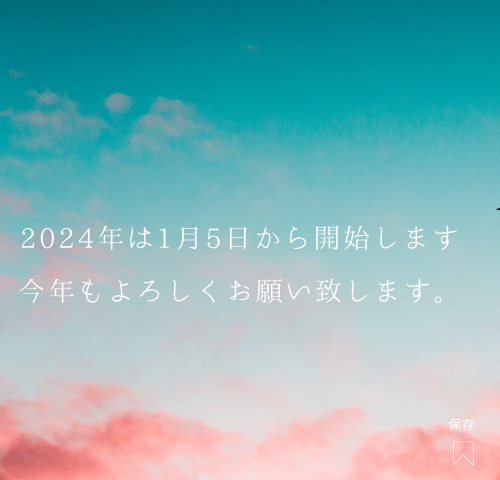 2024年は1月5日から開始いたします。 今年こそはご新規様のご予約が受付できるよう 調整していきますのでどうぞよろしくお願い致します。